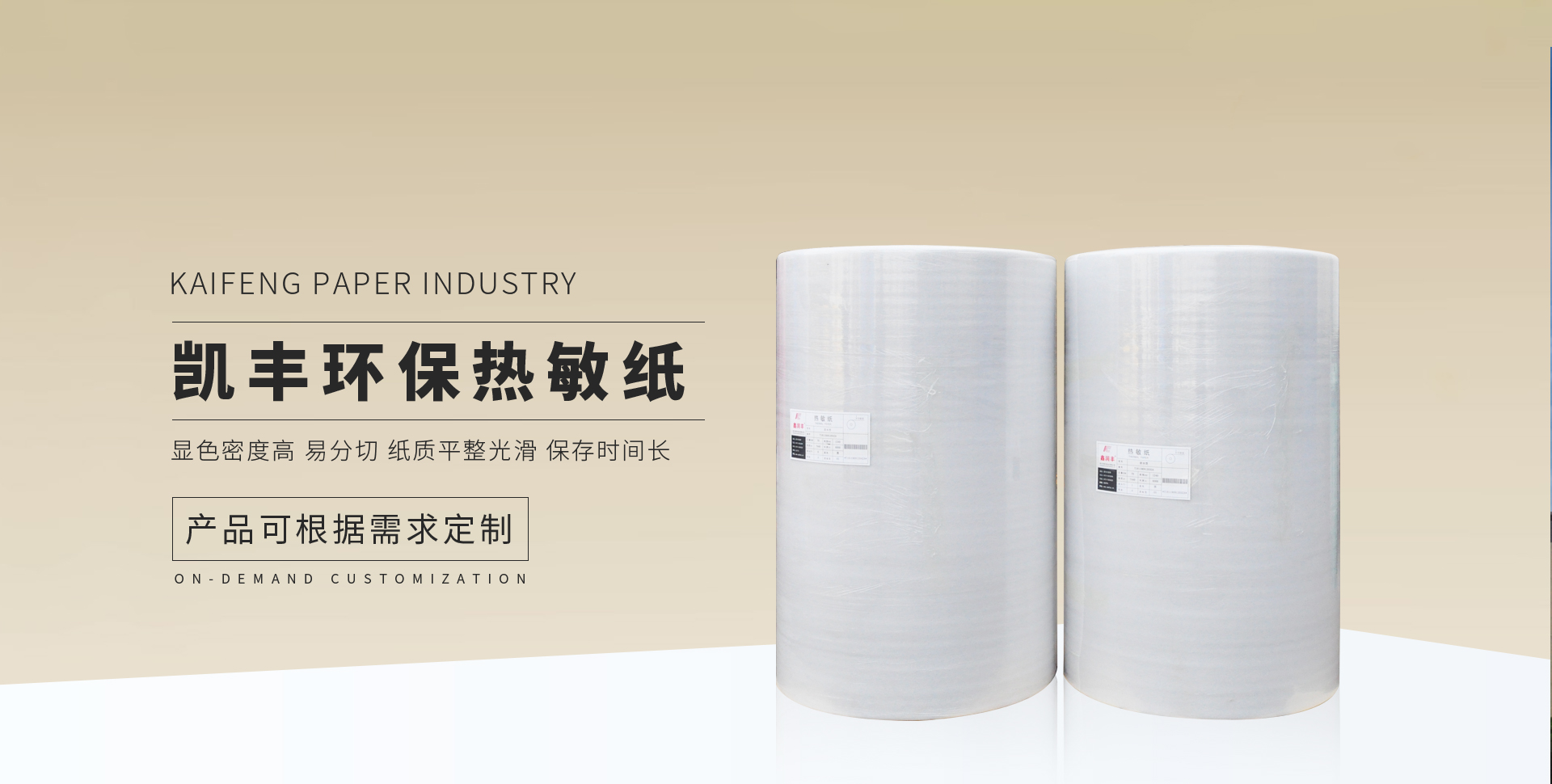 新鄉(xiāng)市凱豐紙業(yè)有限公司于2008年在河南省新鄉(xiāng)縣成立,是一家生產(chǎn)無(wú)碳復(fù)寫(xiě)紙和熱敏紙的民營(yíng)企業(yè)。擁有先進(jìn)的無(wú)碳紙涂布和熱敏紙涂布設(shè)備,年產(chǎn)能3萬(wàn)多噸?! 」局鲗?dǎo)產(chǎn)品無(wú)碳復(fù)寫(xiě)紙、熱敏紙。無(wú)碳復(fù)寫(xiě)紙廣泛應(yīng)用于稅務(wù)、快遞、銀行、商業(yè)等各行業(yè)。熱敏紙廣泛應(yīng)用于票據(jù)、物流、收銀及ATM用紙。公司建立有完善的質(zhì)量管理體系,通過(guò)加強(qiáng)整個(gè)生產(chǎn)過(guò)程中的質(zhì)量監(jiān)控,為客戶(hù)提供更高品質(zhì)的產(chǎn)品?! 」緫{借研發(fā)技術(shù),穩(wěn)定的產(chǎn)品質(zhì)量與良好的商業(yè)信用。產(chǎn)品在東三省、華中、華東、西北、西南等國(guó)內(nèi)市場(chǎng)博得客戶(hù)的好評(píng),公司完善的經(jīng)銷(xiāo)商網(wǎng)絡(luò)更好的服務(wù)全國(guó)客戶(hù)。  為答謝新老客戶(hù)的厚愛(ài),凱豐公司將進(jìn)一步優(yōu)化產(chǎn)品結(jié)構(gòu),擴(kuò)大生產(chǎn),開(kāi)拓務(wù)實(shí),提高產(chǎn)品質(zhì)量,和新老朋友攜手共創(chuàng)輝煌,使我們的明天更美好。歡迎新老客戶(hù)和社會(huì)各界有志之士光臨指導(dǎo)。