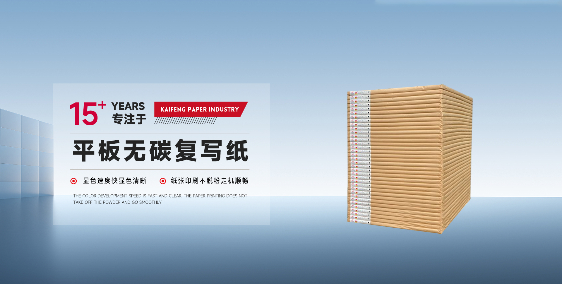 新鄉(xiāng)市凱豐紙業(yè)有限公司于2008年在河南省新鄉(xiāng)縣成立,是一家生產(chǎn)無(wú)碳復(fù)寫(xiě)紙和熱敏紙的民營(yíng)企業(yè)。擁有先進(jìn)的無(wú)碳紙涂布和熱敏紙涂布設(shè)備,年產(chǎn)能3萬(wàn)多噸?! 」局鲗?dǎo)產(chǎn)品無(wú)碳復(fù)寫(xiě)紙、熱敏紙。無(wú)碳復(fù)寫(xiě)紙廣泛應(yīng)用于稅務(wù)、快遞、銀行、商業(yè)等各行業(yè)。熱敏紙廣泛應(yīng)用于票據(jù)、物流、收銀及ATM用紙。公司建立有完善的質(zhì)量管理體系,通過(guò)加強(qiáng)整個(gè)生產(chǎn)過(guò)程中的質(zhì)量監(jiān)控,為客戶(hù)提供更高品質(zhì)的產(chǎn)品?! 」緫{借研發(fā)技術(shù),穩(wěn)定的產(chǎn)品質(zhì)量與良好的商業(yè)信用。產(chǎn)品在東三省、華中、華東、西北、西南等國(guó)內(nèi)市場(chǎng)博得客戶(hù)的好評(píng),公司完善的經(jīng)銷(xiāo)商網(wǎng)絡(luò)更好的服務(wù)全國(guó)客戶(hù)。  為答謝新老客戶(hù)的厚愛(ài),凱豐公司將進(jìn)一步優(yōu)化產(chǎn)品結(jié)構(gòu),擴(kuò)大生產(chǎn),開(kāi)拓務(wù)實(shí),提高產(chǎn)品質(zhì)量,和新老朋友攜手共創(chuàng)輝煌,使我們的明天更美好。歡迎新老客戶(hù)和社會(huì)各界有志之士光臨指導(dǎo)。